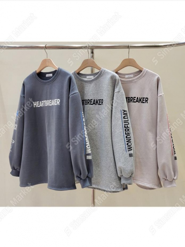 양기모하트브레이크T)가을신상 루즈핏 오버핏 박시티 트임 맨투맨 티셔츠