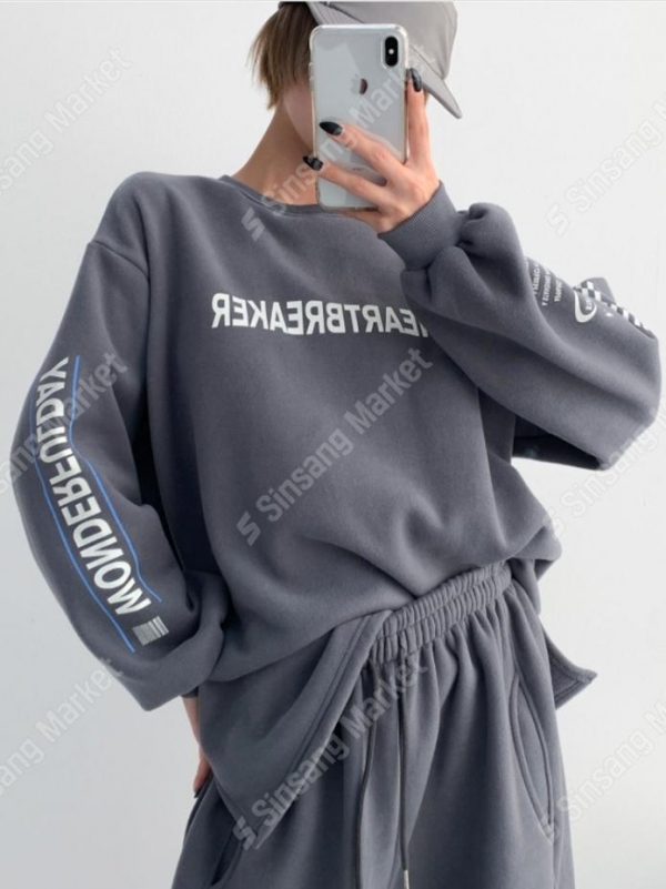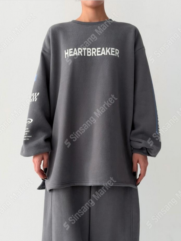 양기모하트브레이크T)가을신상 루즈핏 오버핏 박시티 트임 맨투맨 티셔츠
